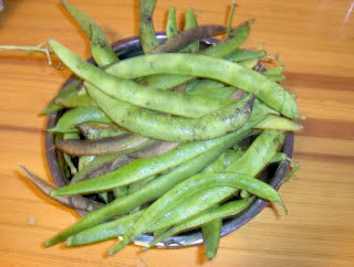 I didn't get around to investigating the beans inside the pods until today. The dried pods revealed black beans with bright pink specks. Unreal! The greener pods have reddish pink beans. So, which ones should I cook up? I went to Google for my answer.